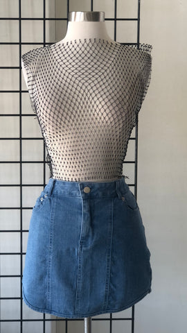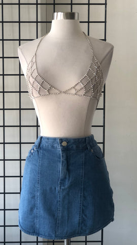 CROP TOP NEGRO DIAMANTES HALTER