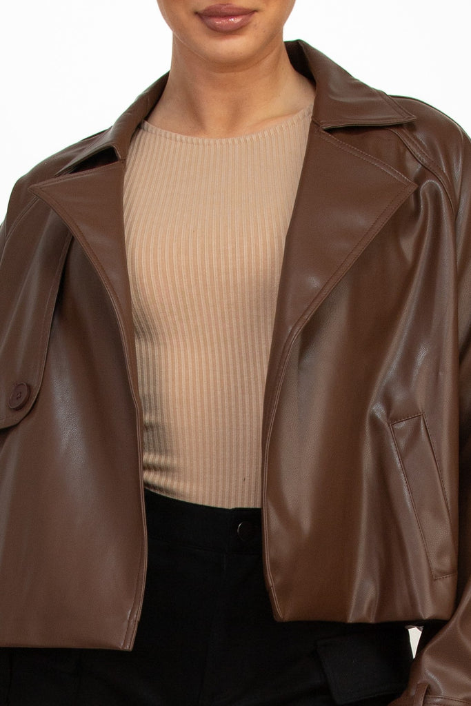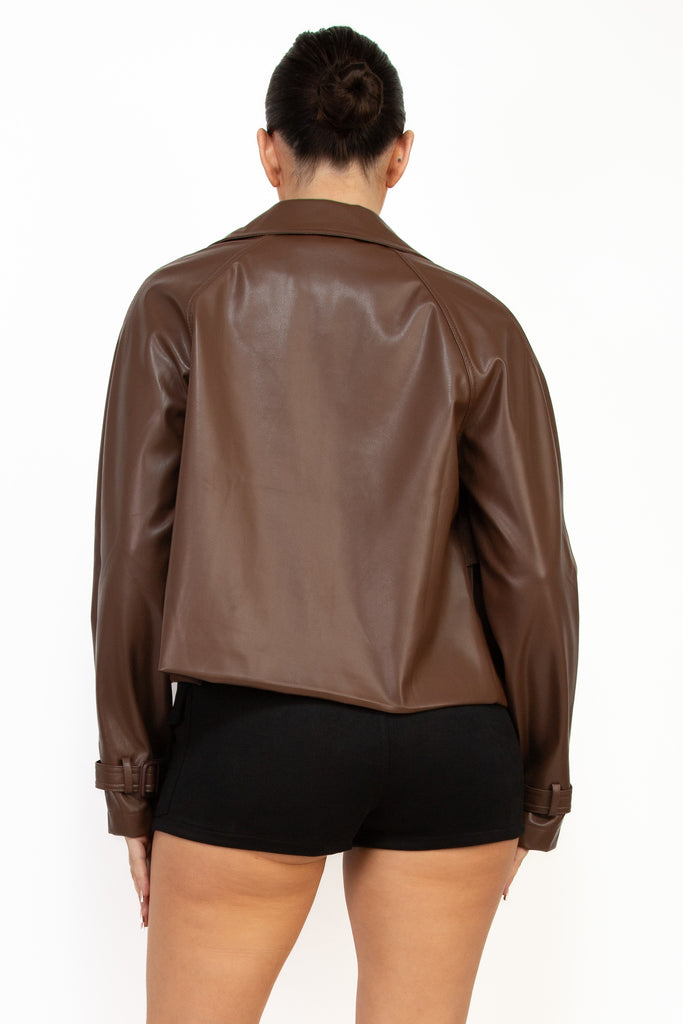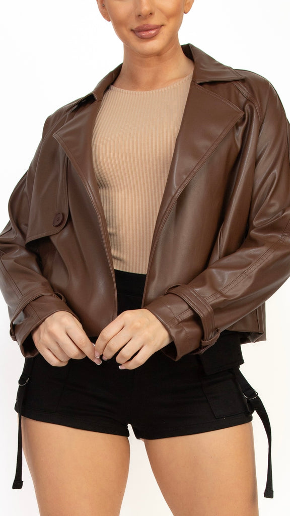 Destaca con estilo usando esta chamarra café corta de piel, diseñada para brindarte un look único y moderno. Sus bolsas prácticas te ofrecen funcionalidad sin perder elegancia, perfecta para complementar cualquier outfit y mantenerte cómodo todo el día.