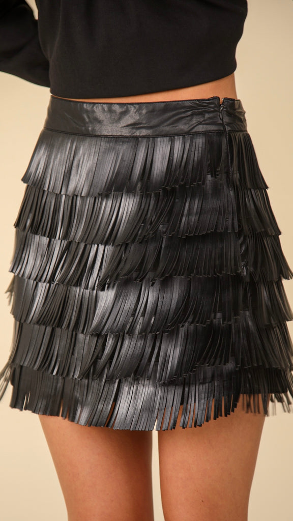- Minifalda de piel vegana con flecos